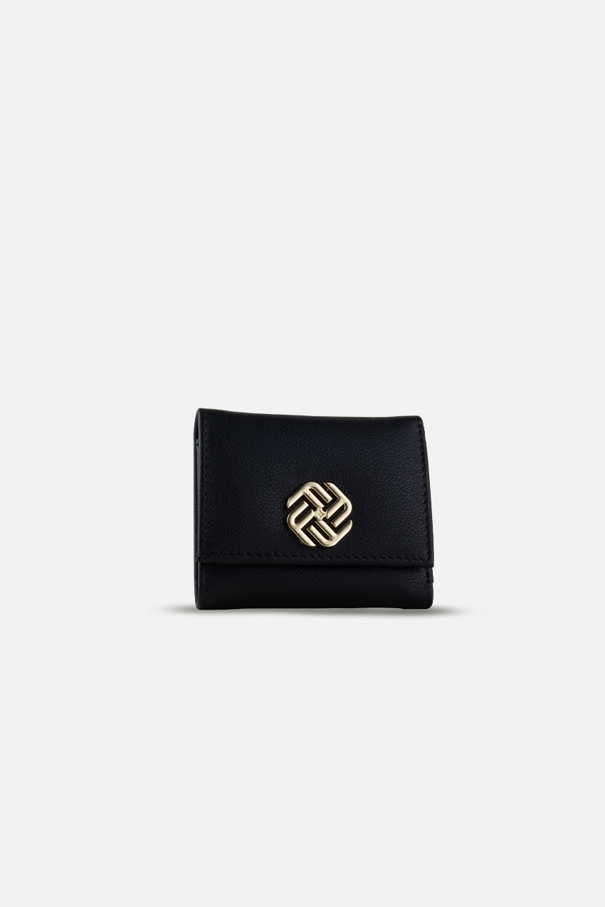 Sleek lines, soft texture, and a gold monogram that catches the light — this compact trifold wallet is crafted in smooth cow leather with a structured feel. Designed to go with everything, without saying too much.